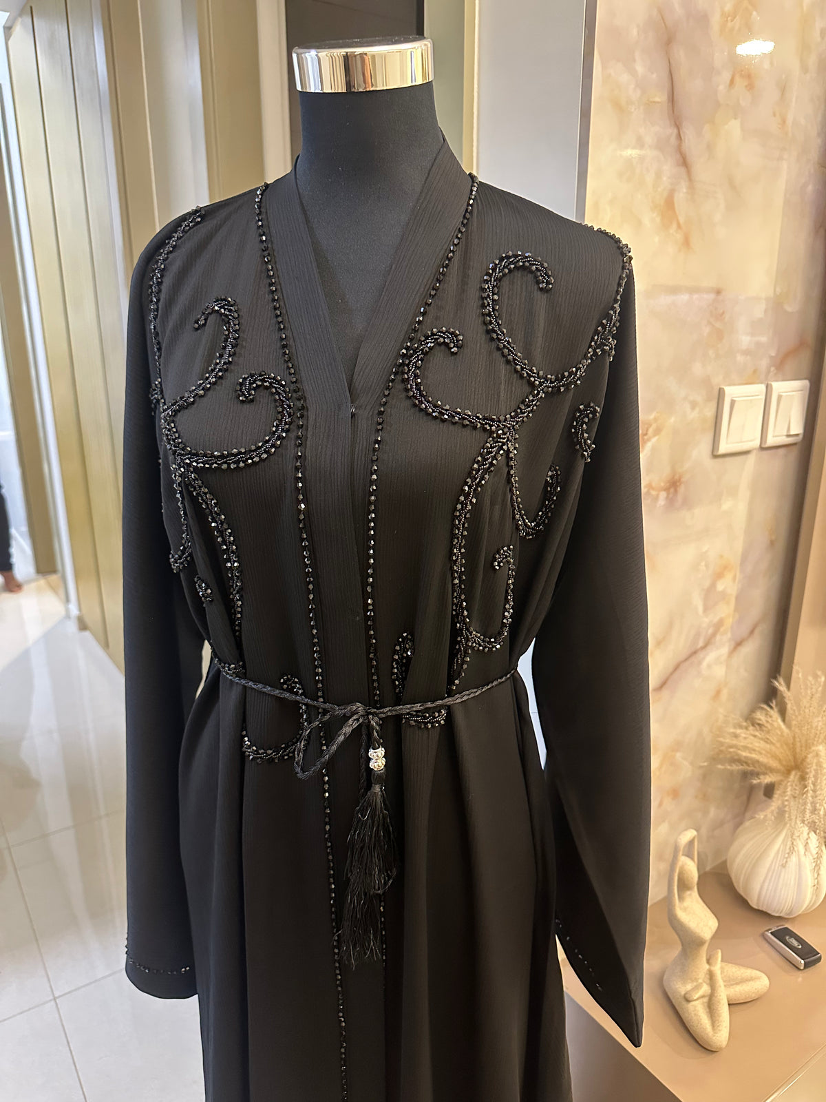 Cette abaya de couleur vert foncé, confectionnée dans un tissu zoom de haute qualité, se distingue par son élégance et sa robustesse. Les perles soigneusement cousues ajoutent une touche de sophistication tout en renforçant la solidité de la pièce. Sa coupe droite, à la fois moderne et intemporelle, en fait un choix idéal pour les occasions quotidiennes comme pour des événements plus formels. Un vêtement versatile qui allie confort et raffinement, parfait pour sublimer votre silhouette en toute circonstance.