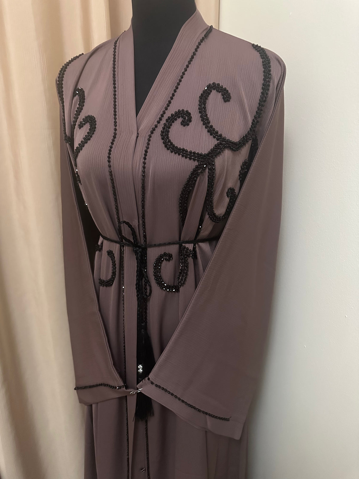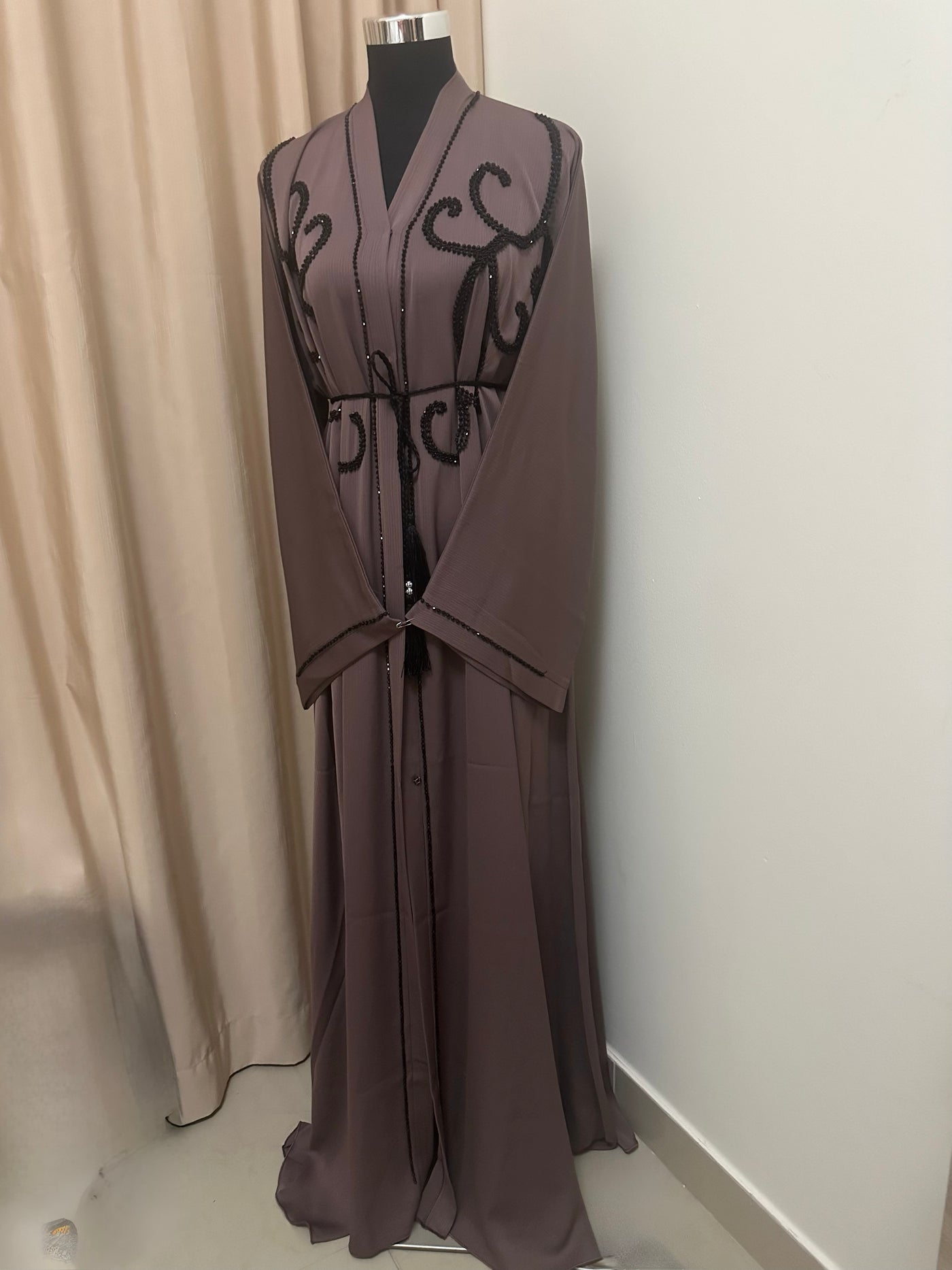 Cette abaya de couleur rose des bois, confectionnée dans un tissu zoom de haute qualité, se distingue par son élégance et sa robustesse. Les perles soigneusement cousues ajoutent une touche de sophistication tout en renforçant la solidité de la pièce. Sa coupe droite, à la fois moderne et intemporelle, en fait un choix idéal pour les occasions quotidiennes comme pour des événements plus formels. Un vêtement versatile qui allie confort et raffinement, parfait pour sublimer votre silhouette en toute circonstance.